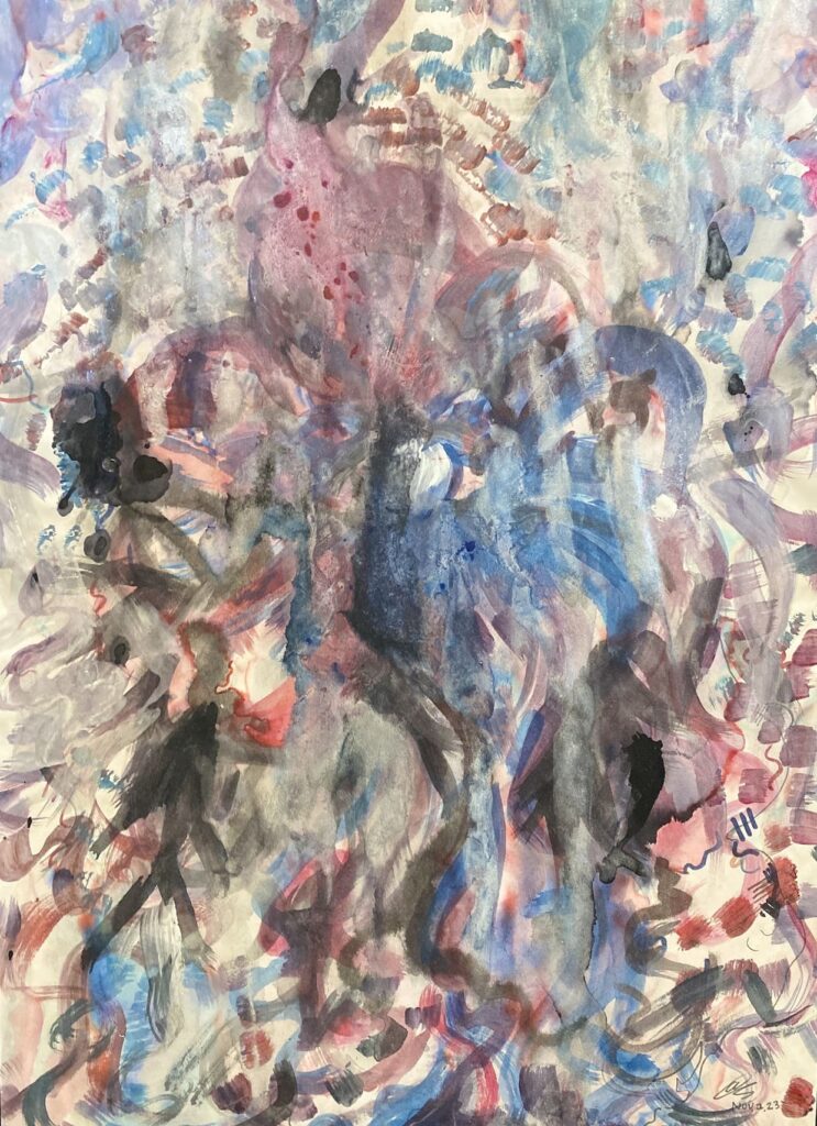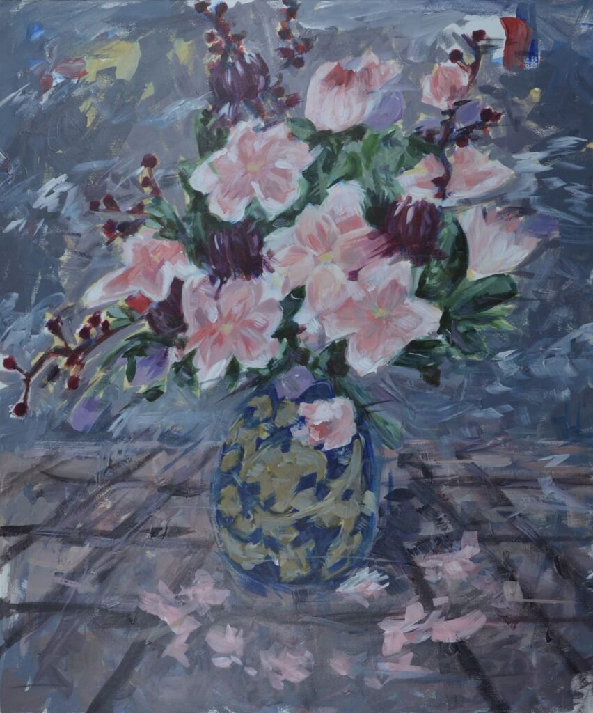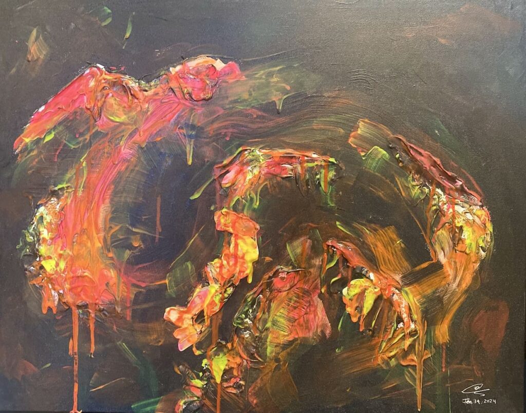 This painting, Blossoms in the Shadows, is about capturing the quiet beauty of flowers in a way that feels alive and meaningful. I wanted to show how even in darker, moody surroundings, light and energy can still flow through. The soft brushstrokes and muted colors naturally move the flowers, like they’re gently swaying or reaching outward. For me, this piece is about finding hope and beauty even when things aren’t perfect. By layering textures and creating a balance between light and shadow, I hoped to show how resilience and softness can exist together. This painting represents how I see the world—imperfect, but full of moments worth holding onto.